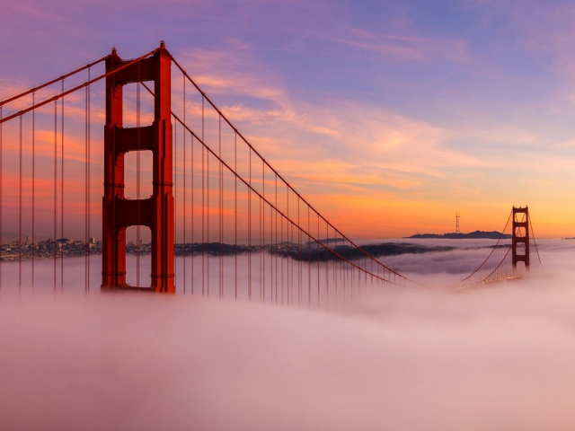Сан-Франциско считается одним из самых туманных мегаполисов мира, и именно это делает его визуальный образ таким узнаваемым. Холодный воздух с Тихого океана встречается с теплыми прибрежными потоками, формируя плотный туман, который ложится волнами на холмы и мосты. Golden Gate в такие моменты выглядит словно портал между мирами: его башни поднимаются над облачным полотном, создавая мощный контраст цвета и света. Туман одновременно скрывает детали и подчеркивает геометрию, что делает город особенно привлекательным для фотографов.